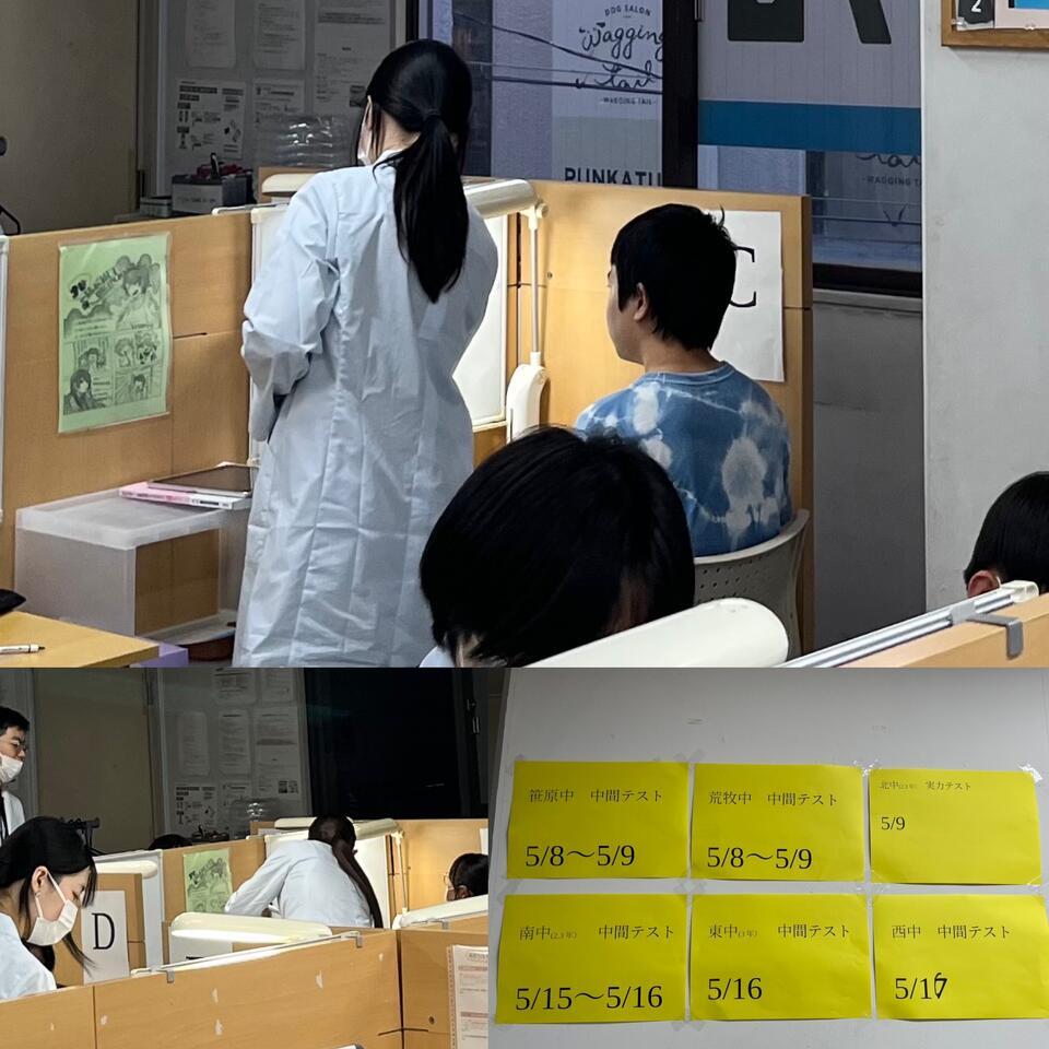 東中の3年生•西中の皆さんも明日5/16金曜日1日だけになりますが中間テストになります。