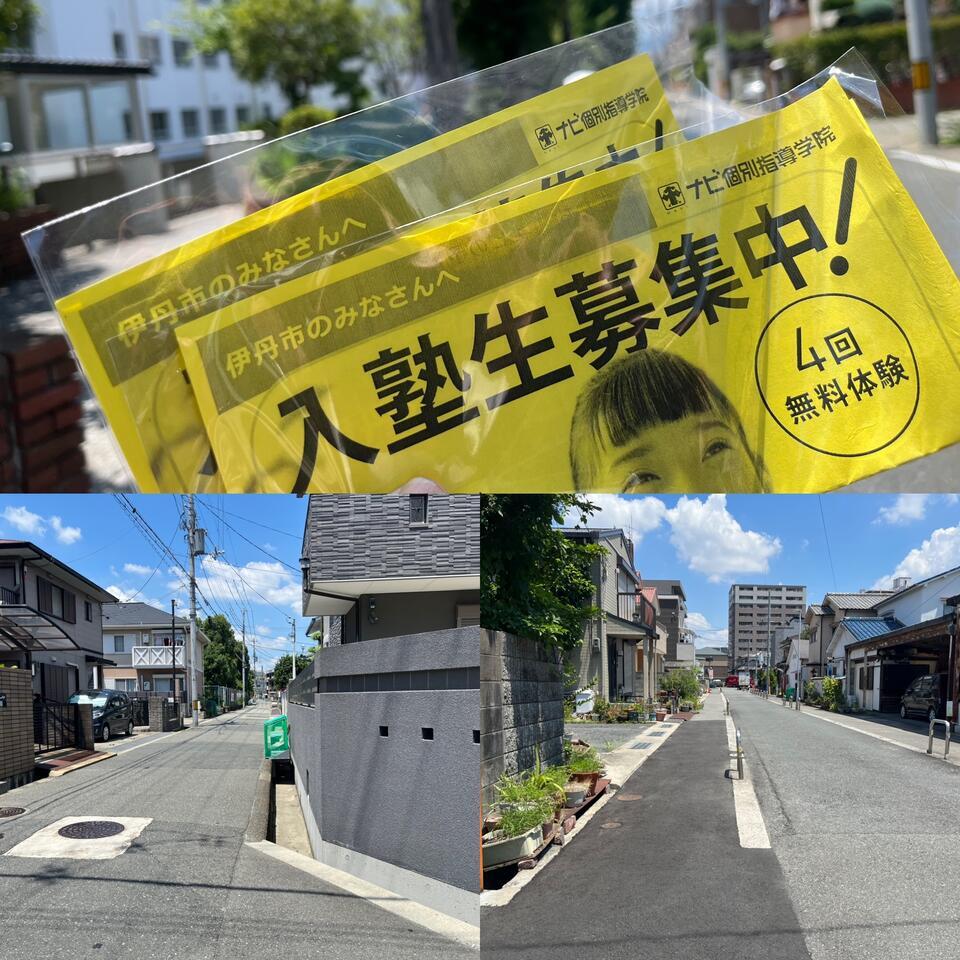 昨日の午前中は、伊丹市船原付近中心に小中高生対象の無料体験授業の案内のチラシを配らせて頂きました。