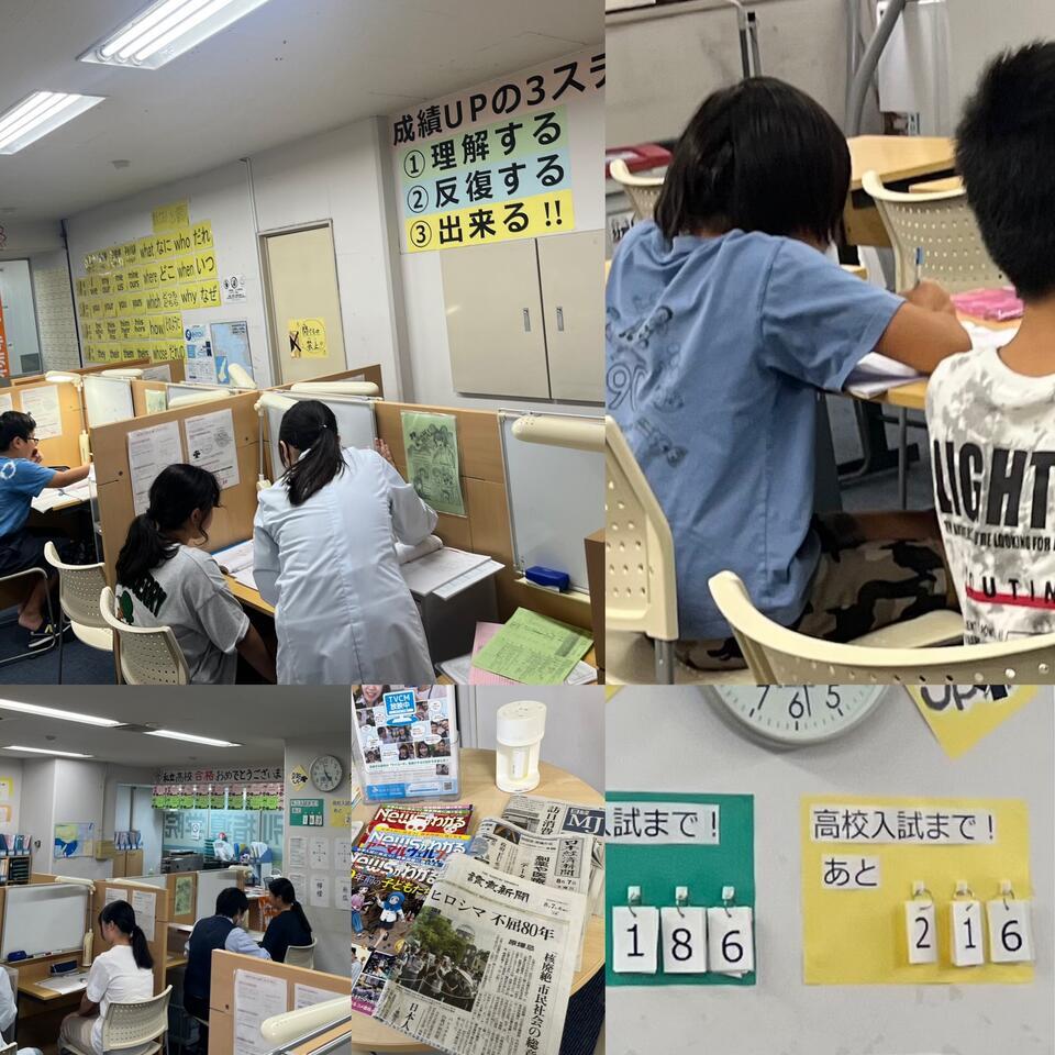 上記期間は、夏期休業で教室はお休みになります。(8月11日、8月12日は中学3年生対象の日帰り合宿のため教室は開いてはいますが通常授業、自習室利用は出来ません)