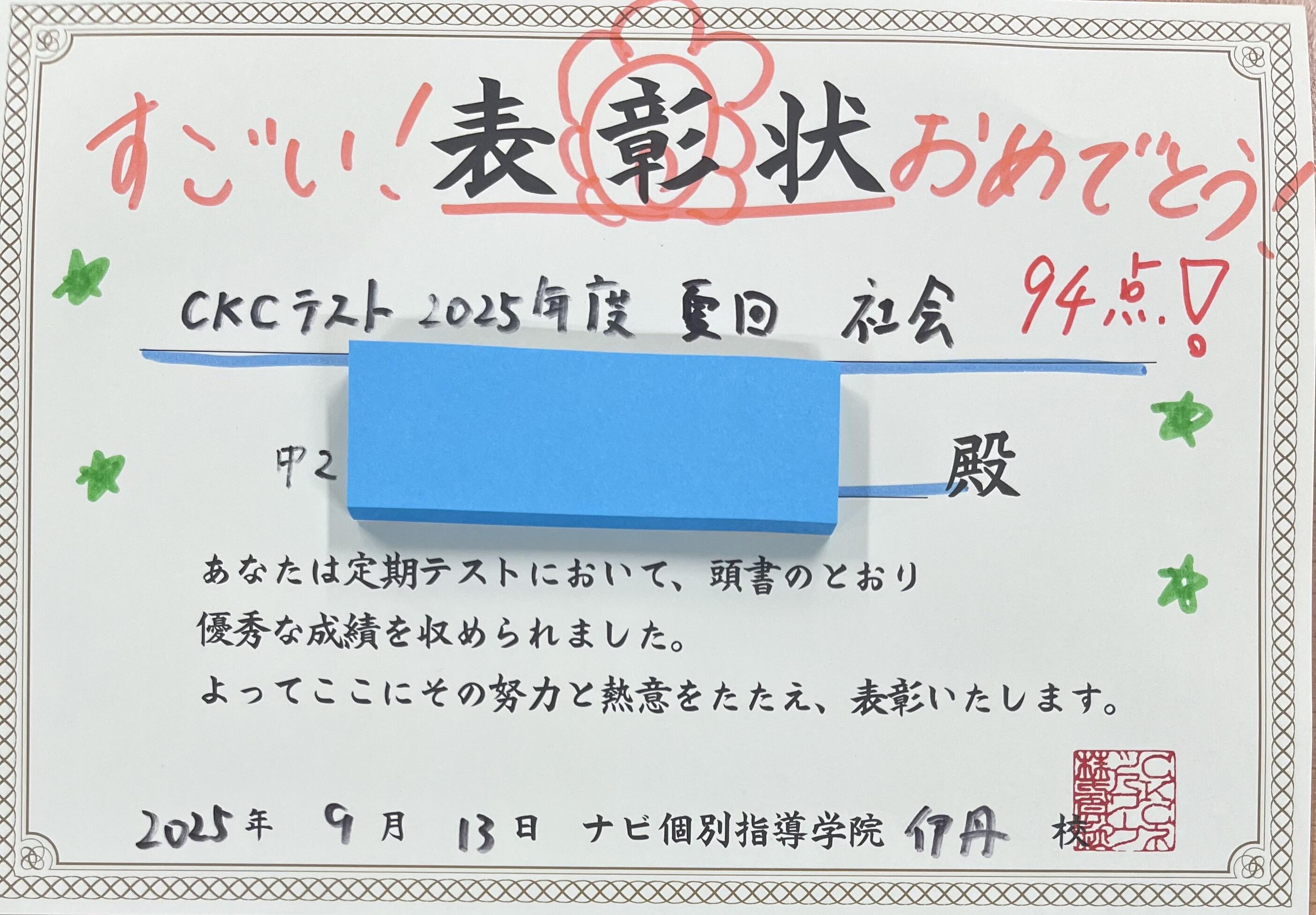 本日も昨日、一昨日に続いて、7月にあった全国模試CKCテストで嬉しい結果の出た生徒さんを紹介させていただきます。