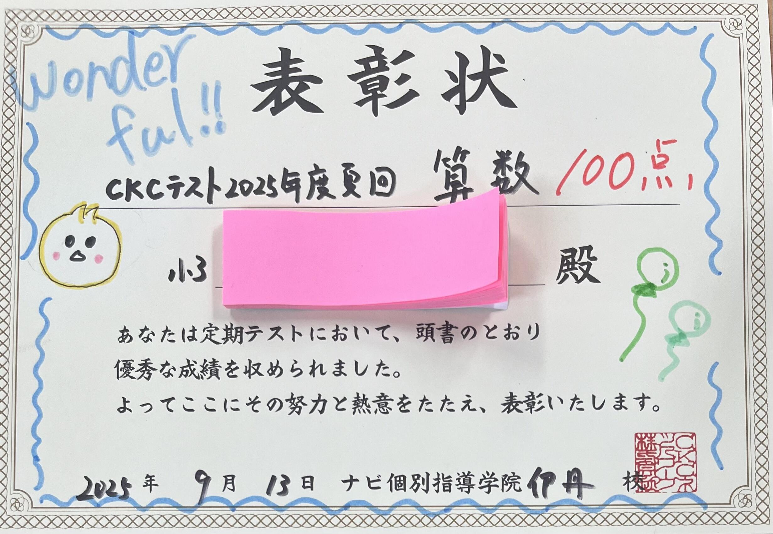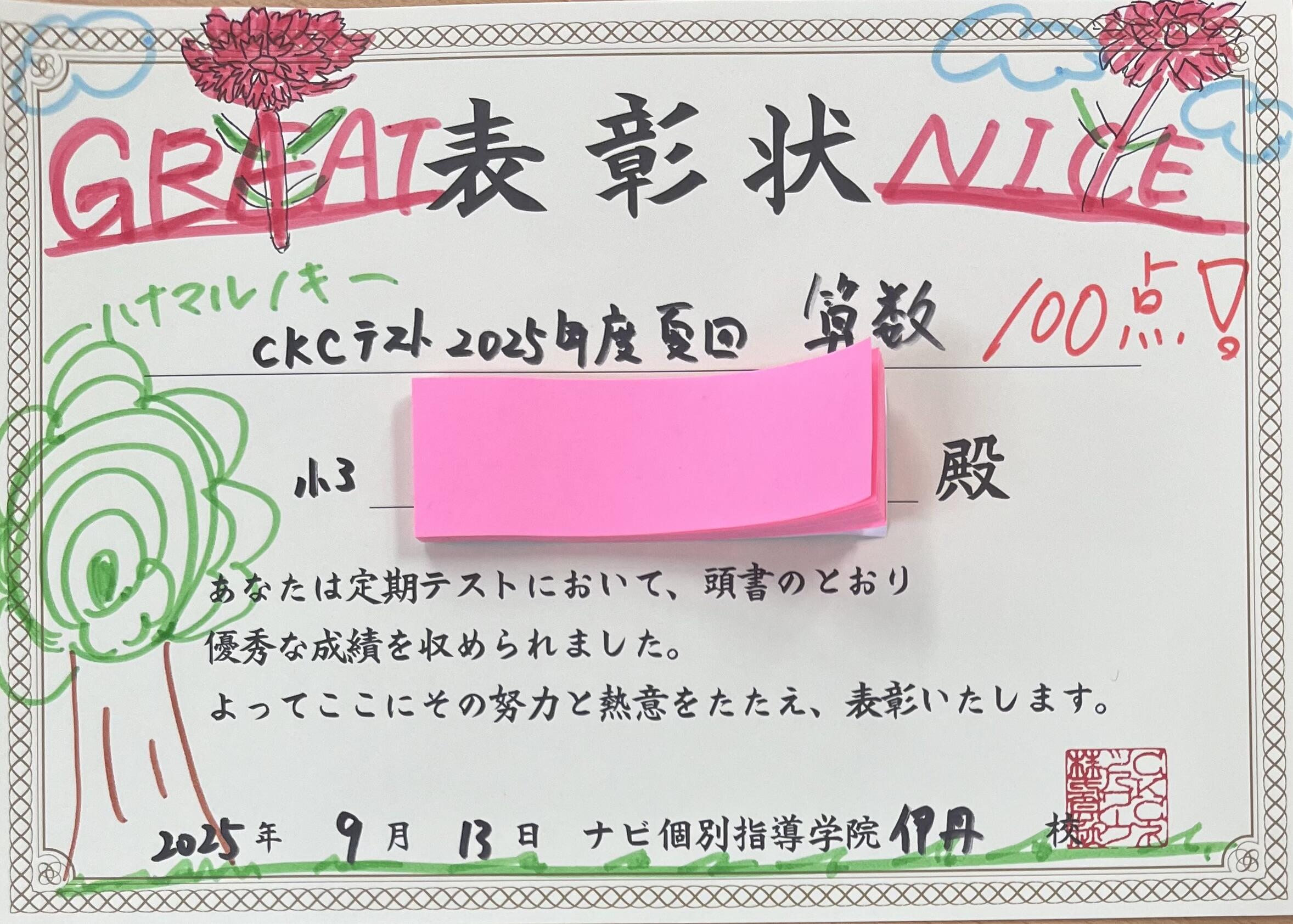 7月にあった全国模試CKCテストで嬉しい結果の出た生徒さんを紹介させていただきます。