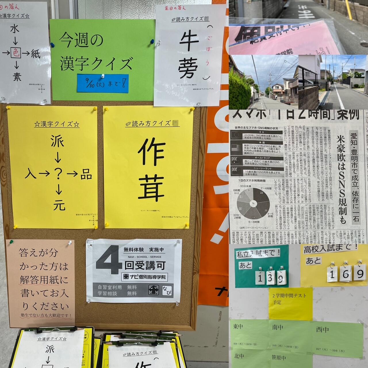 西中の皆さんは昨日中間テスト2週間前に入りましたし、そのほかの中学校の皆さんも明日9/25木曜日には同じく2週間前に突入します。