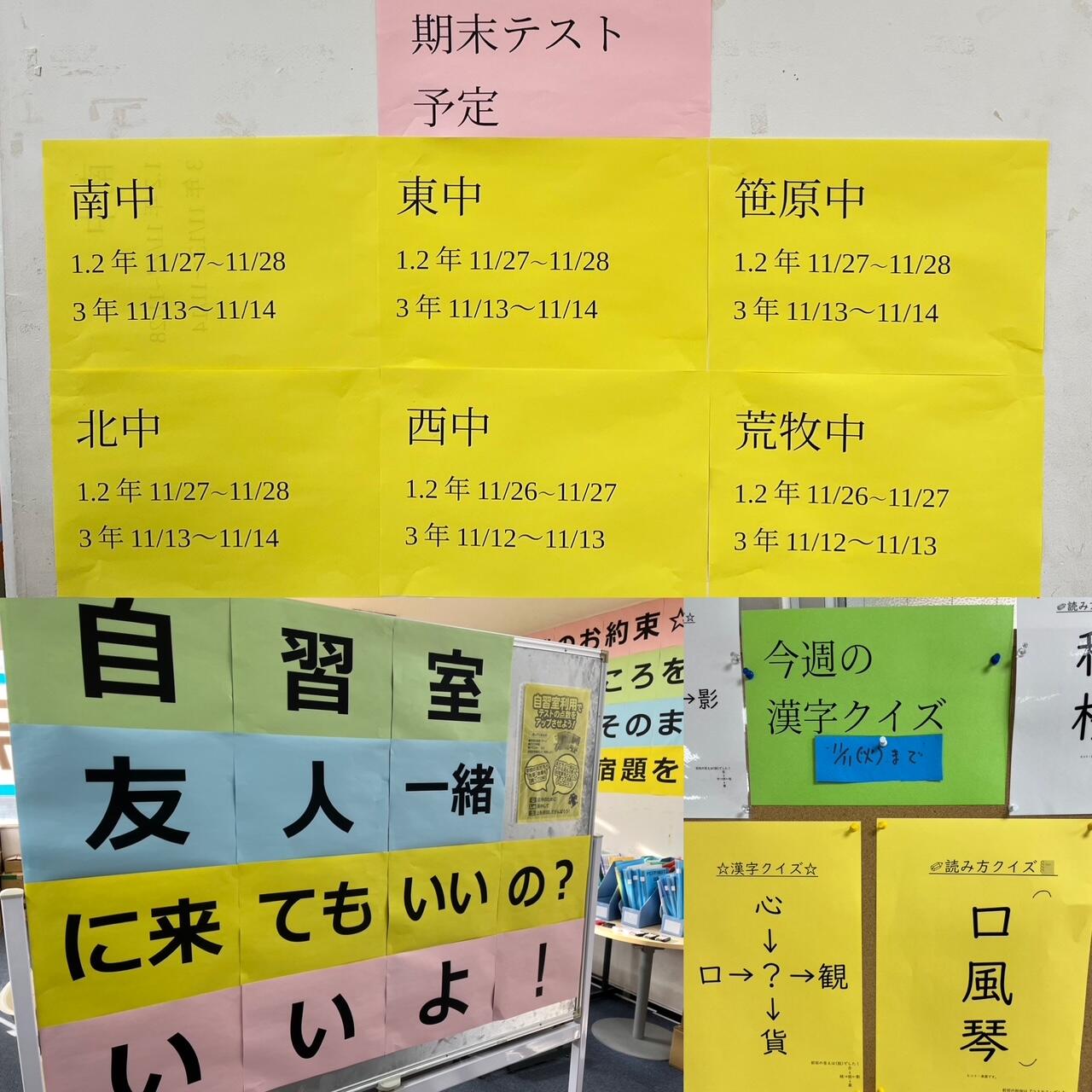 そのほかの各中学の1.2年生も来週には期末テスト2週間前に突入します。