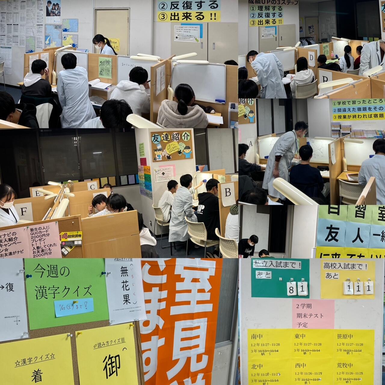 北中•西中•荒牧中の1.2年生の皆さんは来週26日水曜日から、南中•東中•笹原中1.2年生の皆さんは27日木曜日から期末テストスタートです!