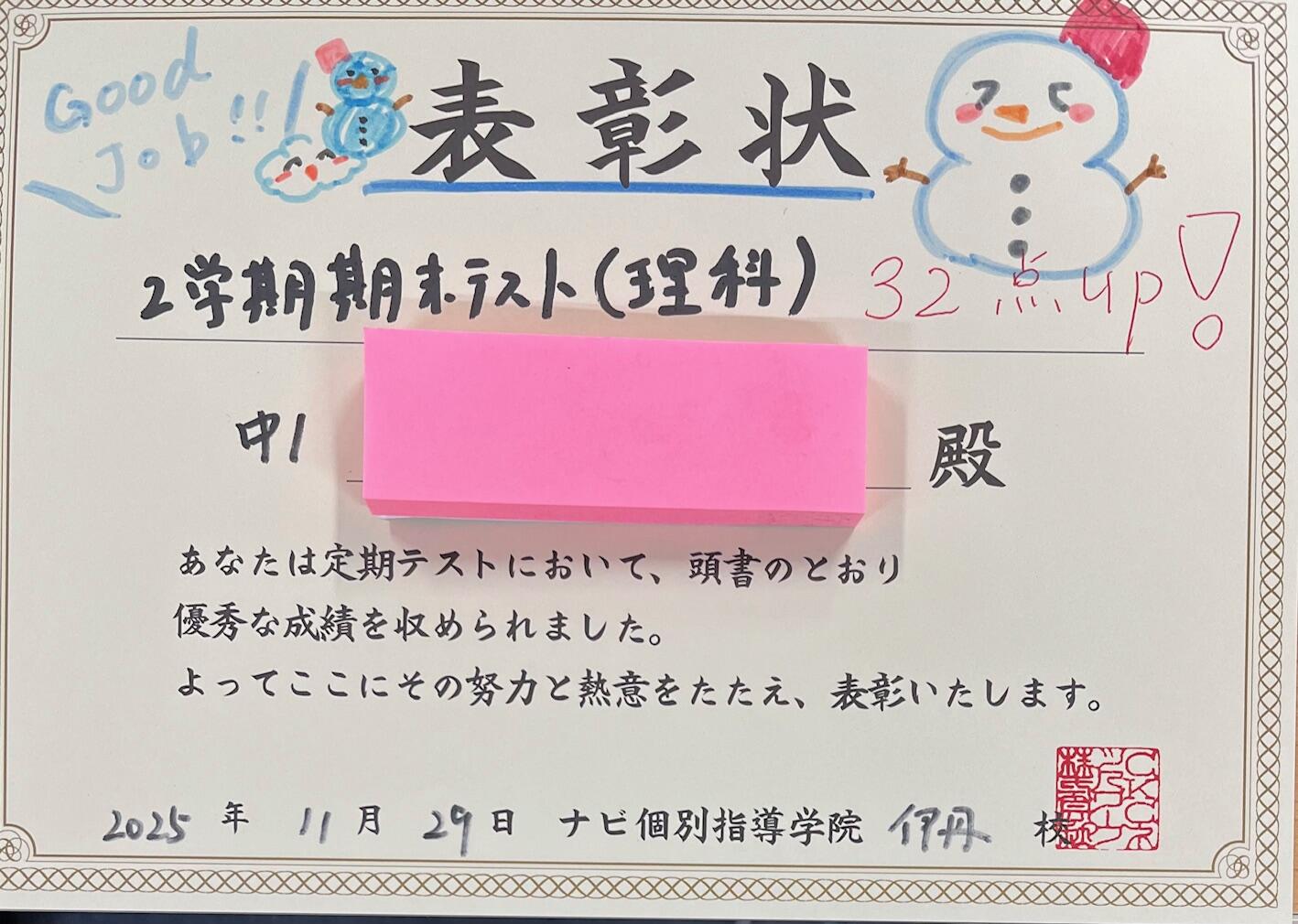 本日も 期末テストで嬉しい結果の出た生徒さんを一部紹介させて頂きます。