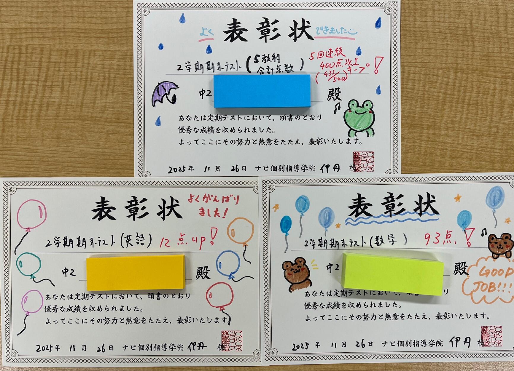 先週に続いて期末テストで嬉しい結果の出た生徒さんを一部紹介させて頂きます。