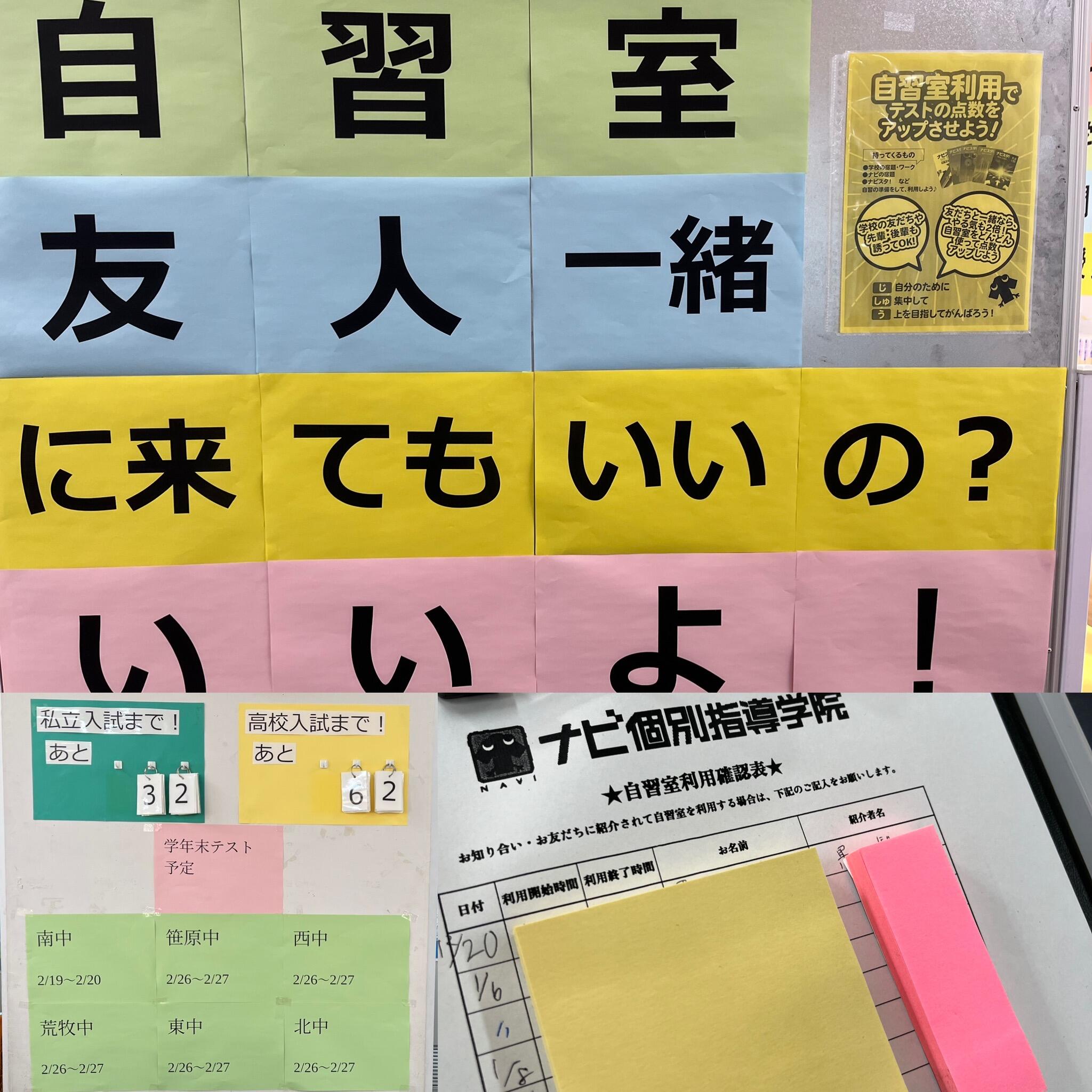 当教室の自習室は火曜から土曜日の間は塾生・塾生でない生徒さん関係なく利用OKですから、友達同士誘い合わせて来て頂いても大丈夫ですし、塾生でない生徒さん同士で来て頂いても大丈夫ですので、是非利用して下さい!