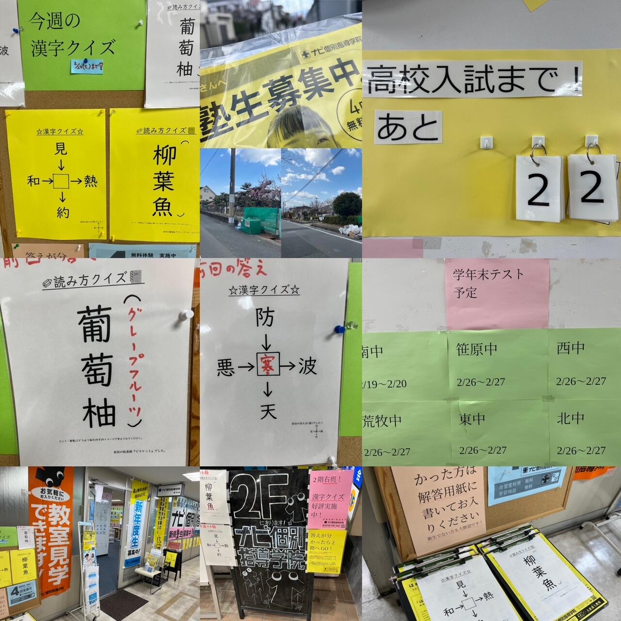 西中・東中・北中・笹原中・荒牧中の1.2年生も明日2/19木曜日には学年末テスト1週間前に突入します。