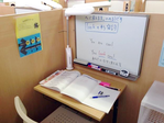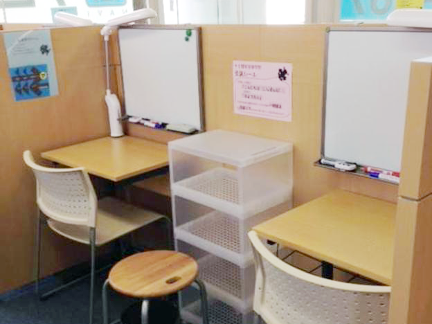 ナビ個別指導学院の授業は、個別の席ごとに設置された自分専用のホワイトボードで解き方や考え方を一緒に確認、それから生徒が問題を解くという「個別授業」スタイルです。