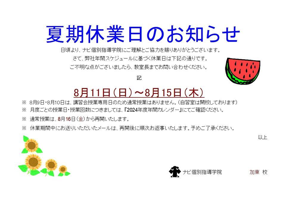 8月16日(金)から、通常授業再開となりますので、お休みの期間中にいただいたご連絡は、16日以降順次お返事させていただきます。