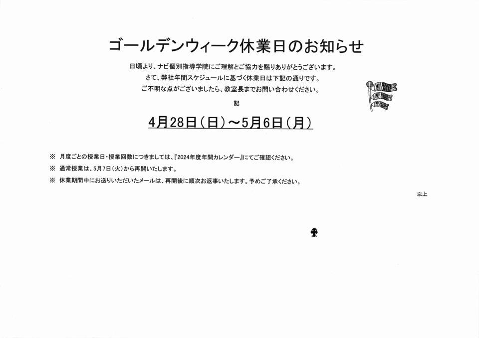 表題の通り、ナビ個別指導学院では以下の日程で