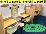 ナビ個別指導学院の授業は、個別の席ごとに設置された自分専用のホワイトボードで解き方や考え方を一緒に確認、それから生徒が問題を解くという「個別授業」スタイルです。