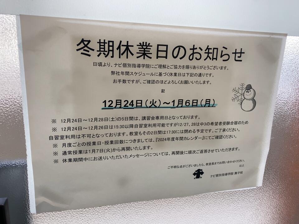 12月27日(金)と12月28日(土)は中3の希望者受験合宿のため自習室利用不可となっております。