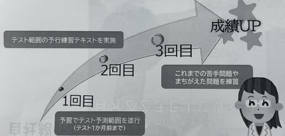 3回目はテスト2週間前に苦手部分や間違えた部分に絞ってもう1度復習。