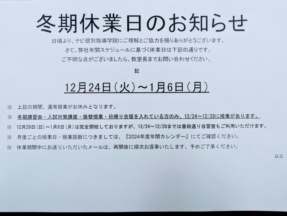 上記の期間は通常授業がお休みとなります!