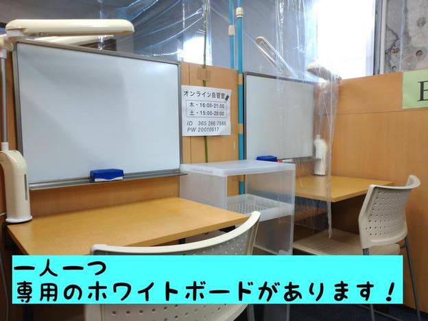 ナビ個別指導学院の授業は、個別の席ごとに設置された自分専用のホワイトボードで解き方や考え方を一緒に確認、それから生徒が問題を解くという「個別授業」スタイルです。