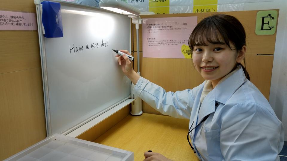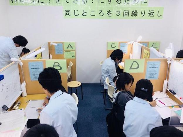 ナビ個別指導学院の授業は、個別の席ごとに設置された自分専用のホワイトボードで解き方や考え方を一緒に確認、それから生徒が問題を解くという「個別授業」スタイルです。