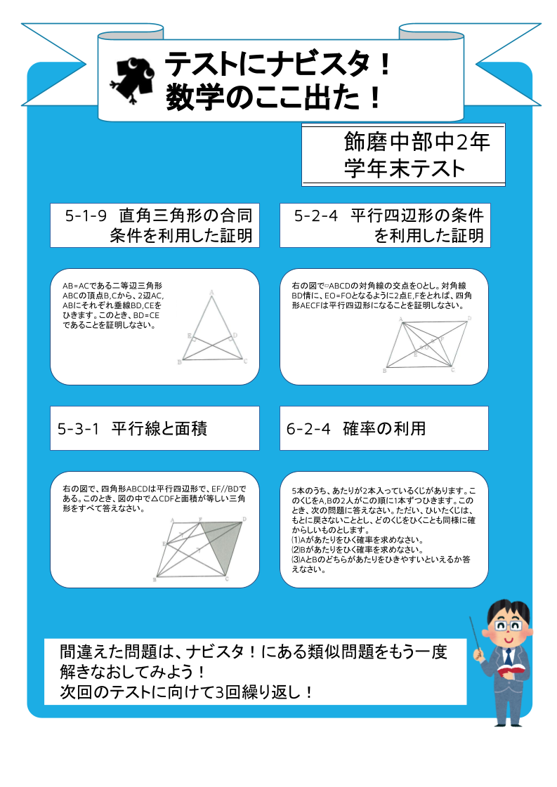 いよいよテスト範囲が配られ、テスト対策を始めていると思います。