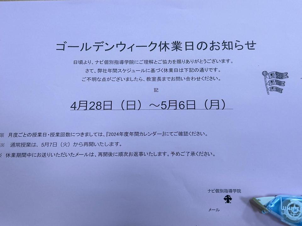 今回はゴールデンウィーク休業日のお知らせです。