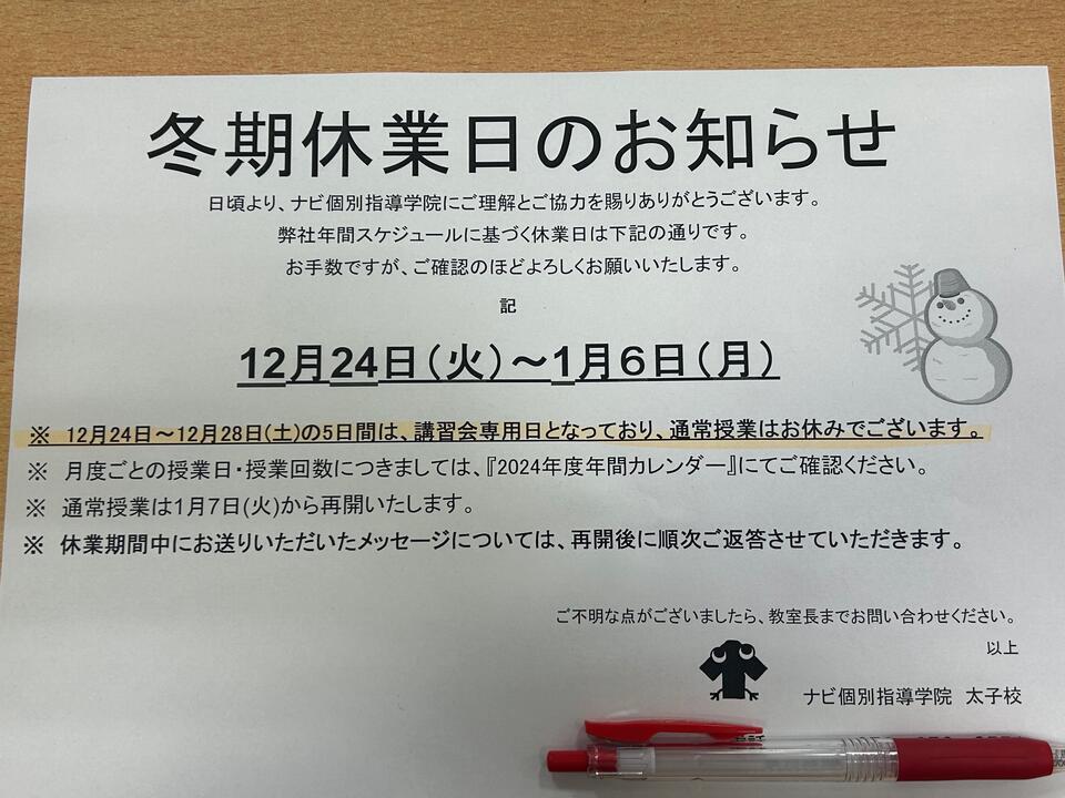 12/24(火)~1/6(月)は冬期休業期間となっております。