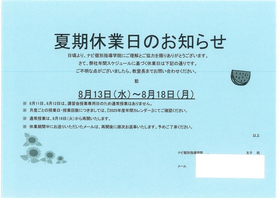ナビ太子校のお盆のお休みをお知らせします!