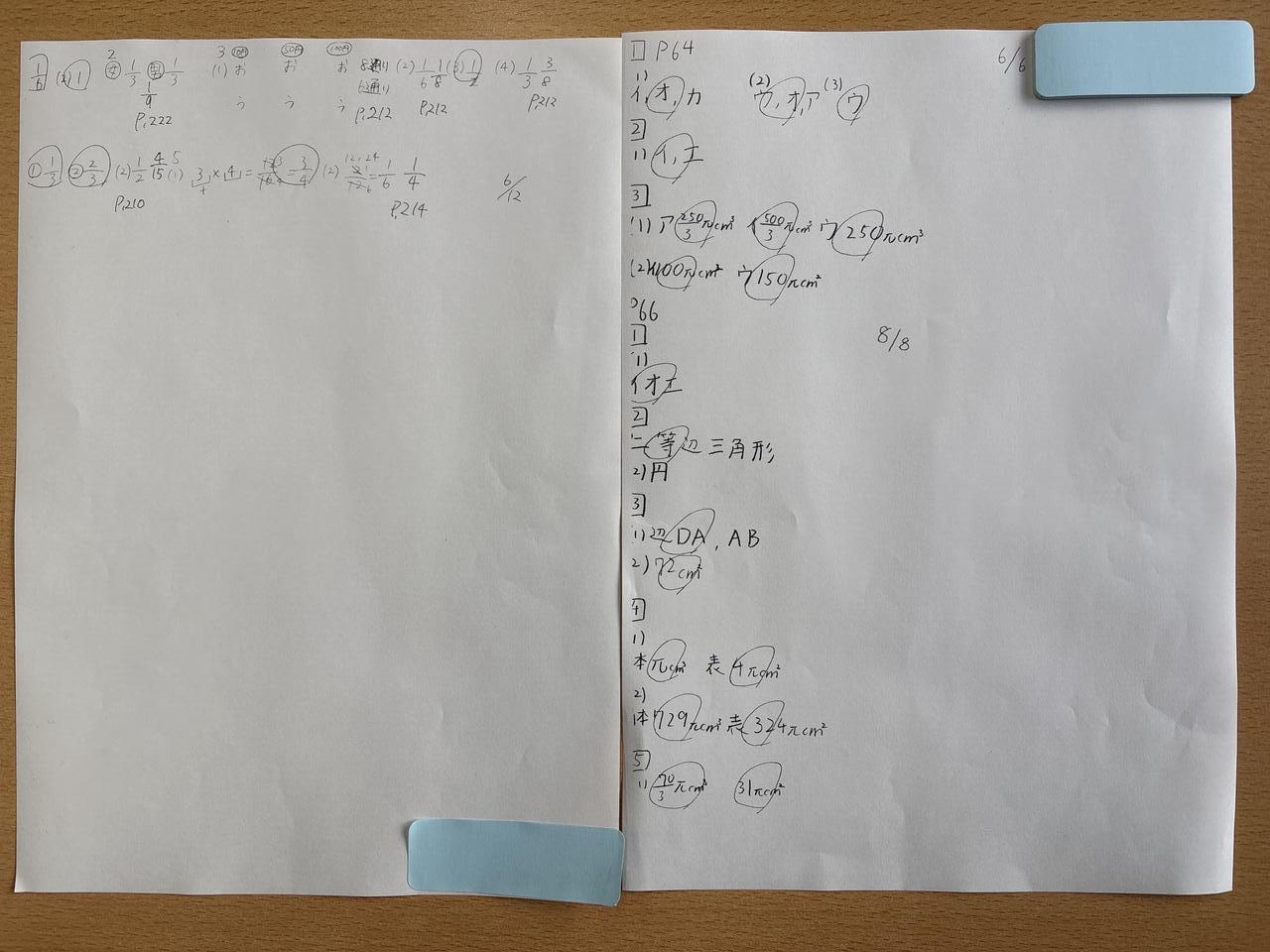 今回は授業で使用している数学テキストのまとめページを使い、実力の確認を実施しました。