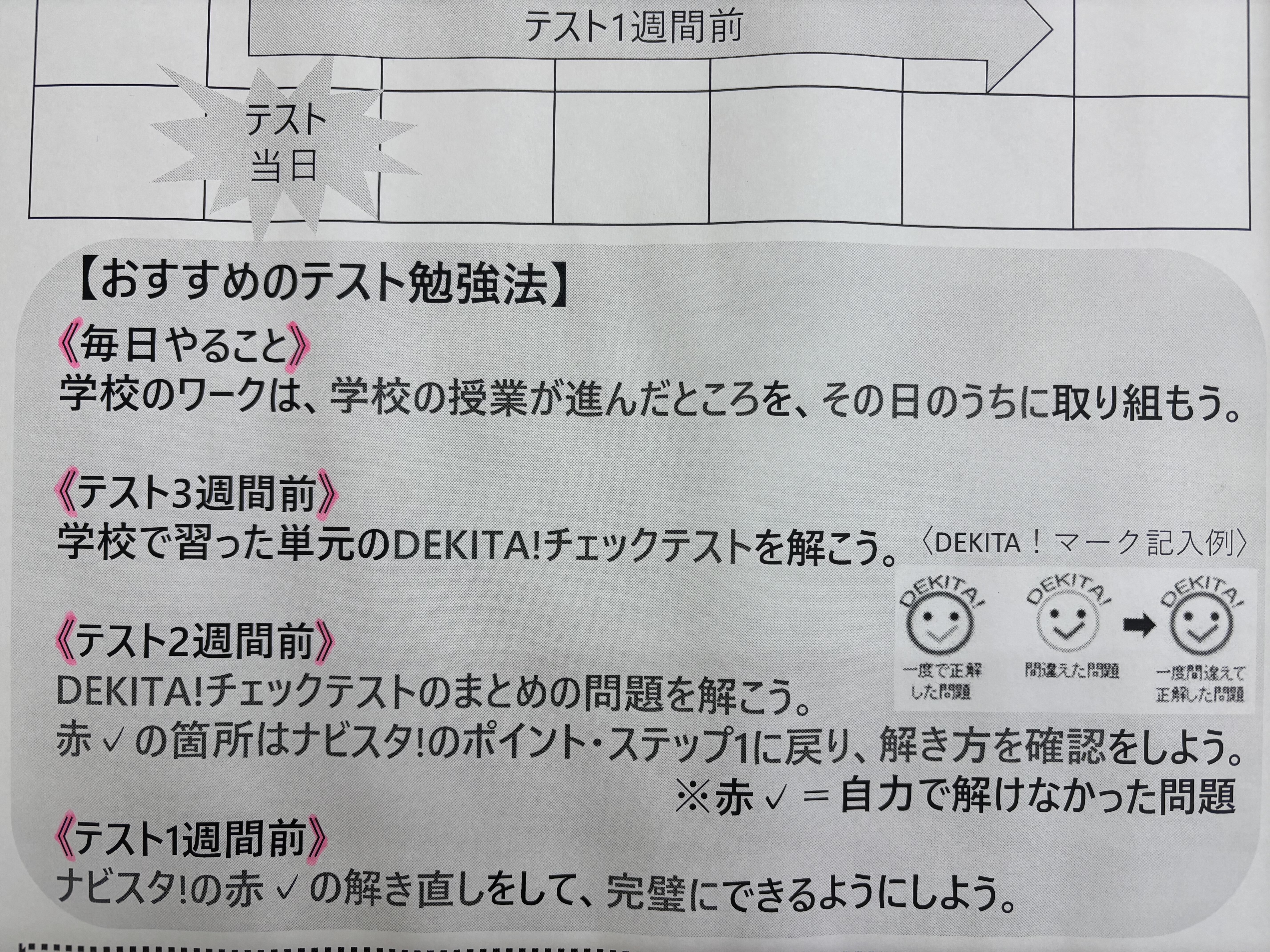 テストが近くなるとテスト範囲がある程度判明してくるので、苦手を洗い出す勉強をしておきましょう。