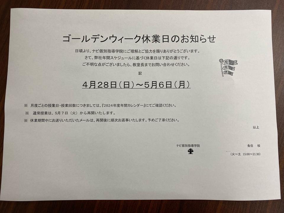 皆様にゴールデンウィーク休業日のお知らせです。