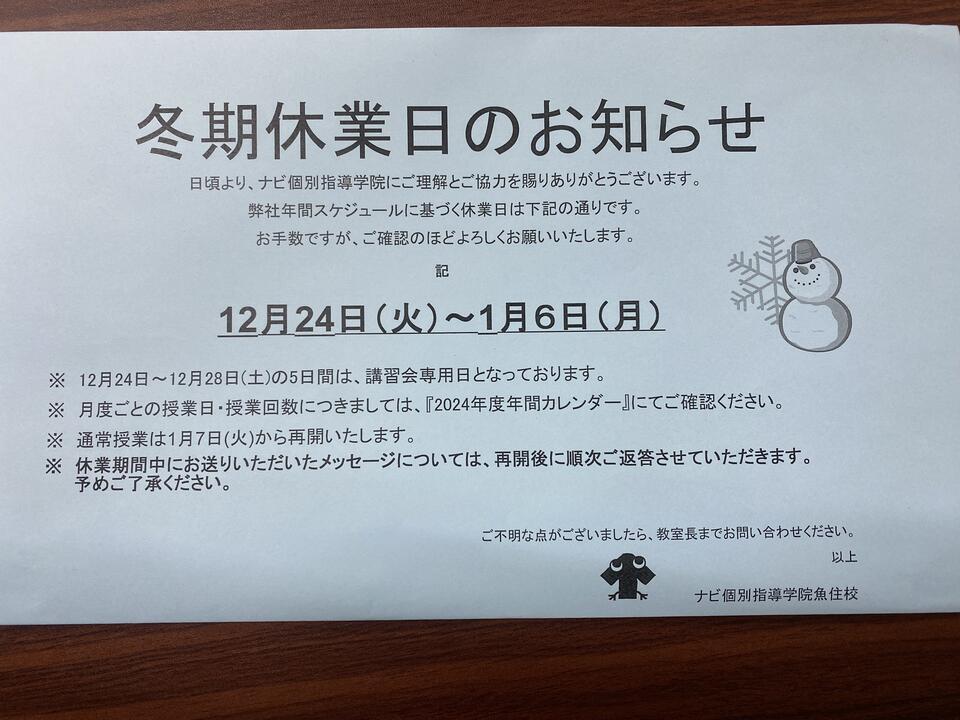 12月24日(火) ~ 1月6日(月)は冬期休業日です!