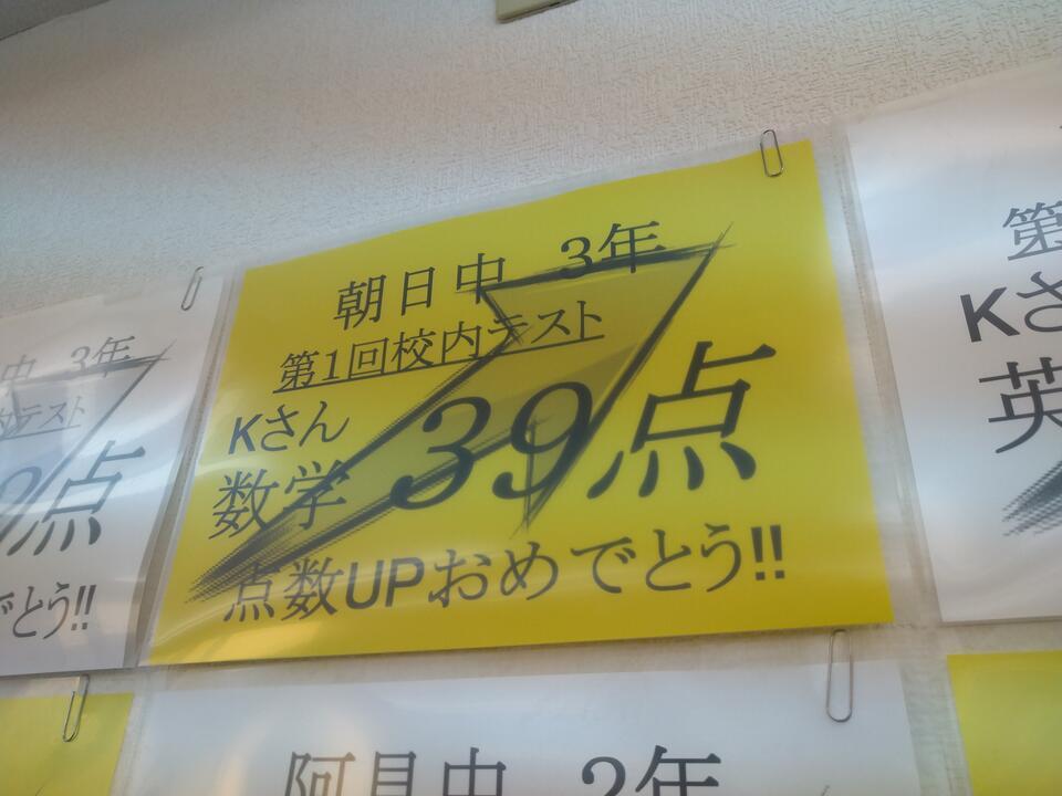 早速テスト返却された中で、前回のテスト結果から最初の成績アップ者をご紹介します。