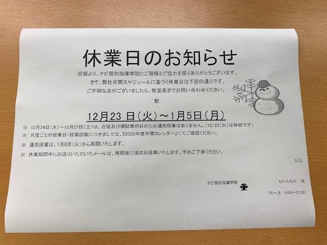 冬季休業日のお知らせになります。
