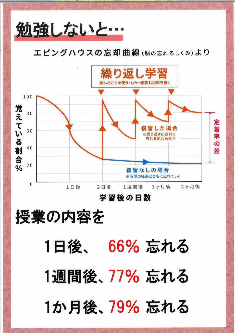 写真のように、時間が経つと記憶はどんどん低下していきます。