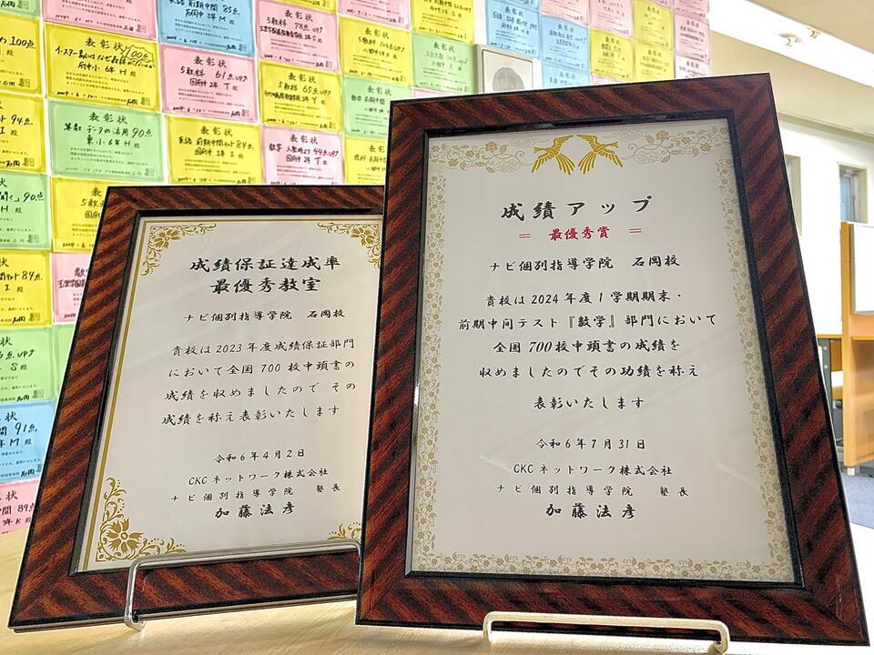 ナビ個別指導学院 石岡校が2024年度1学期期末・前期中間テスト『数学』部門において最優秀教室として表彰されました。