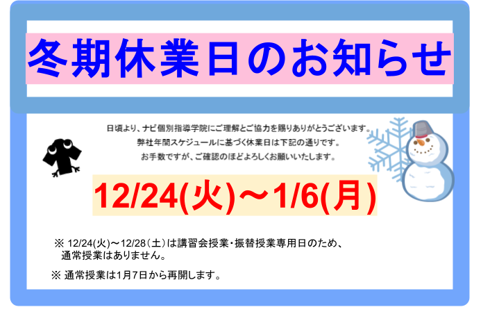日頃より、ナビ個別指導学院にご理解とご協力を賜りありがとうございます。