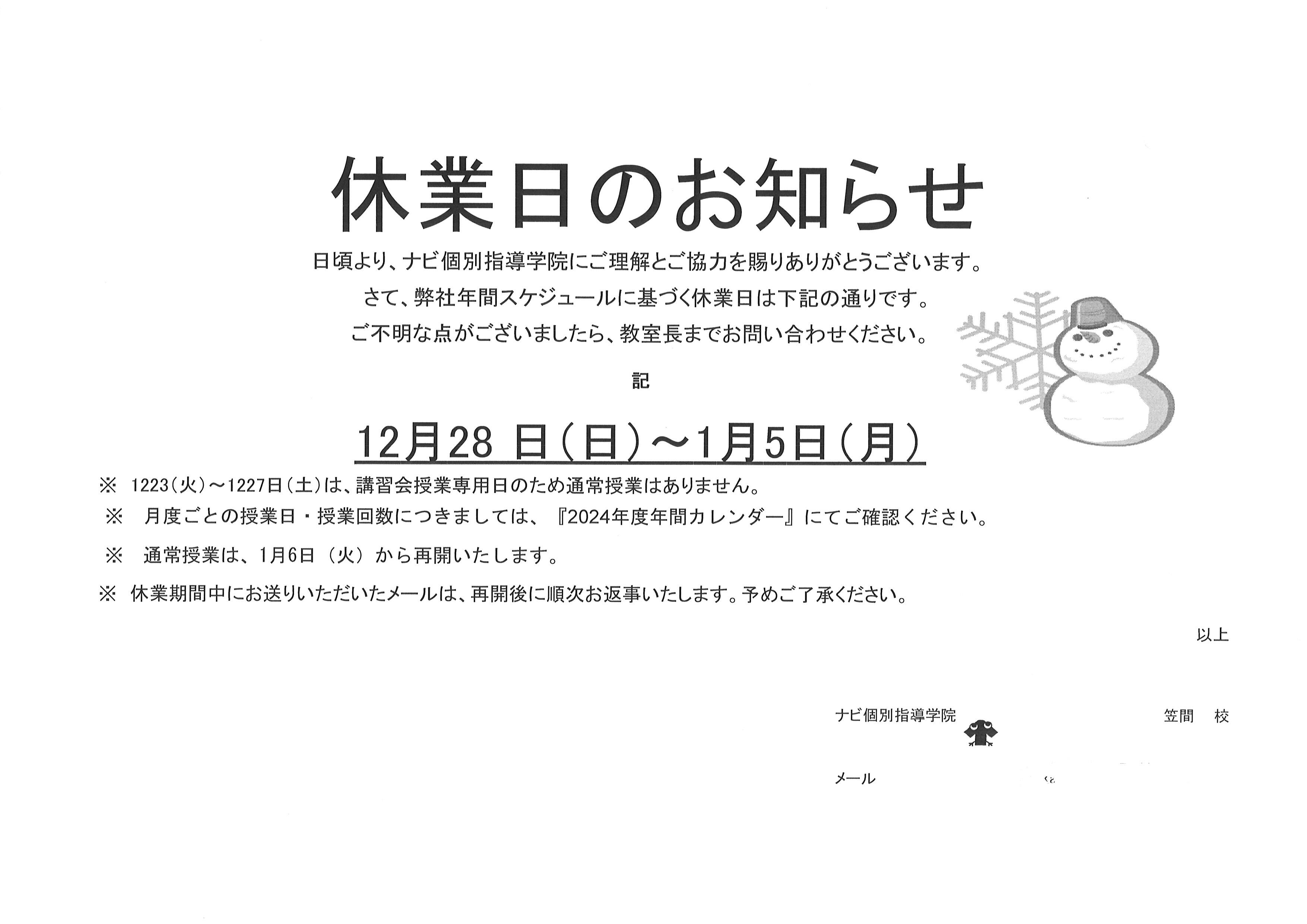 ~~休業のお知らせ~~
