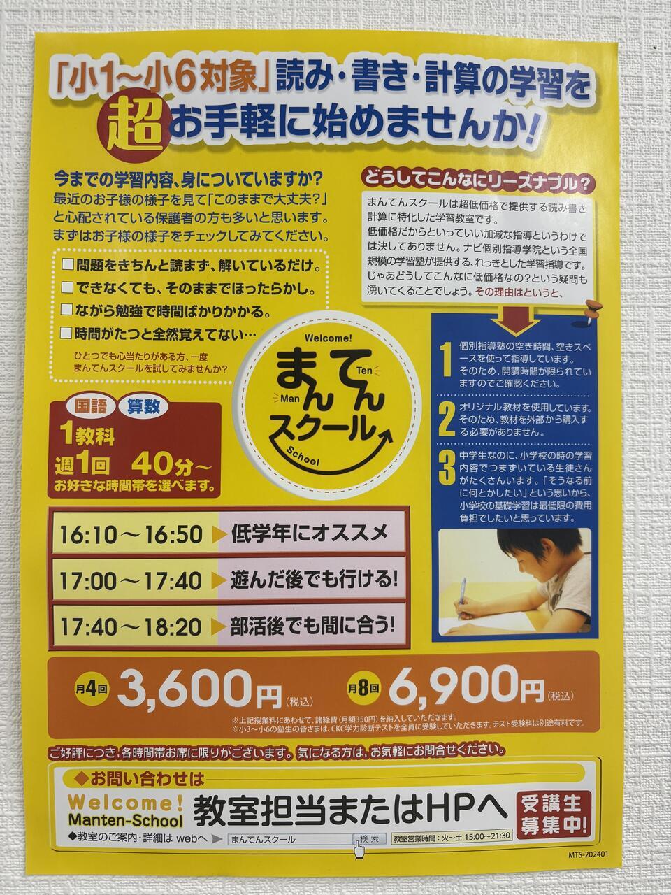 まんてんスクールのお問い合わせはこちらから出来ます!