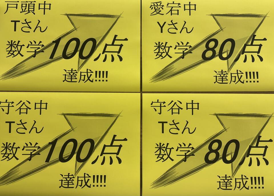 守谷中1年Tさん 数学80点!