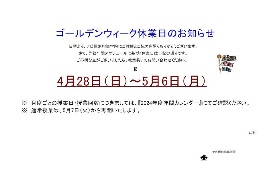 ナビ個別指導学院にご理解とご協力を賜りありがとうございます。