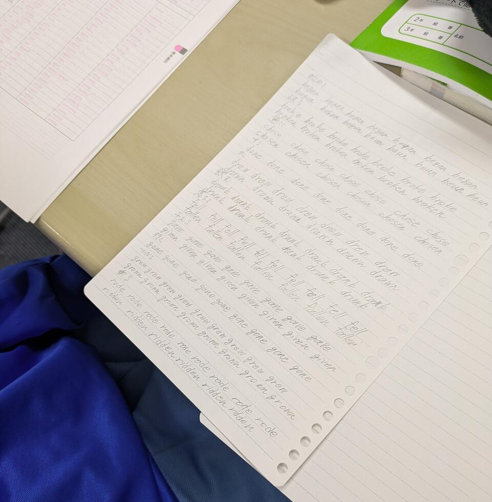 写真は水戸赤塚校の自習室で単語テストで書けなかった単語を練習していたノートです。