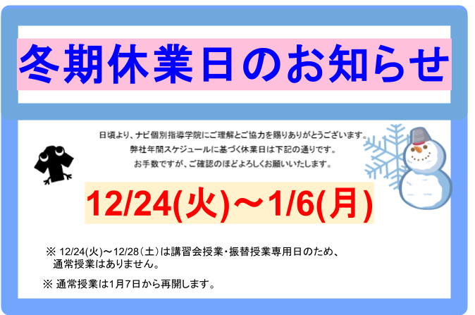冬期休業日 12月24日( 火 )~1月6日( 月 )