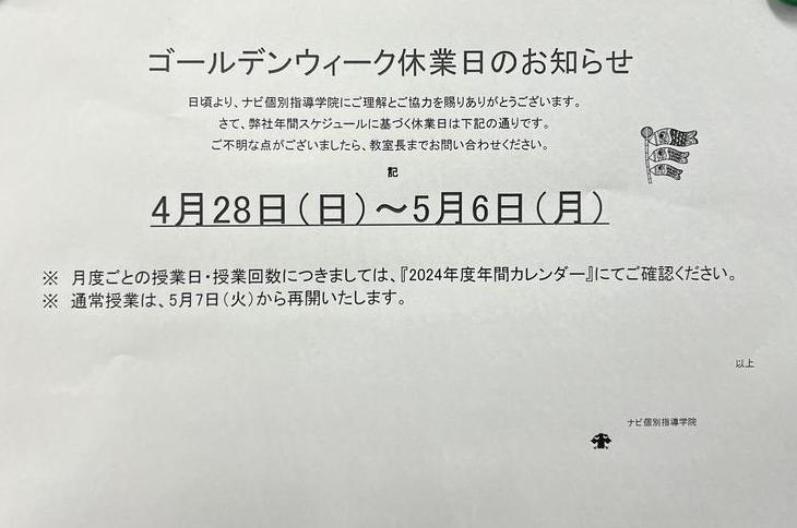 ゴールデンウィーク休業日