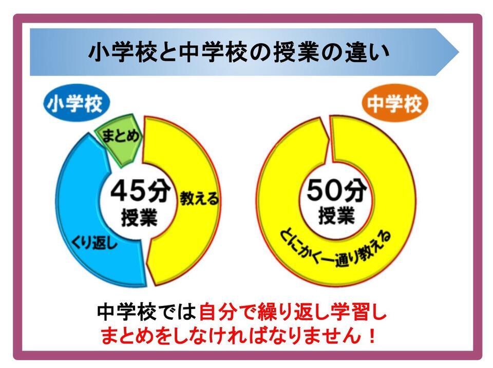 小学校での「教える→繰り返し→まとめ」という形から、中学校では、「ひたすら教える」へと変わります。