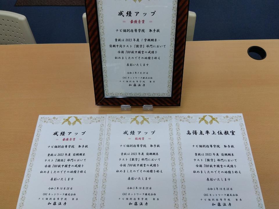 写真の通り、ナビ取手校は成績アップの優秀教室として、会社から毎回表彰されています!!