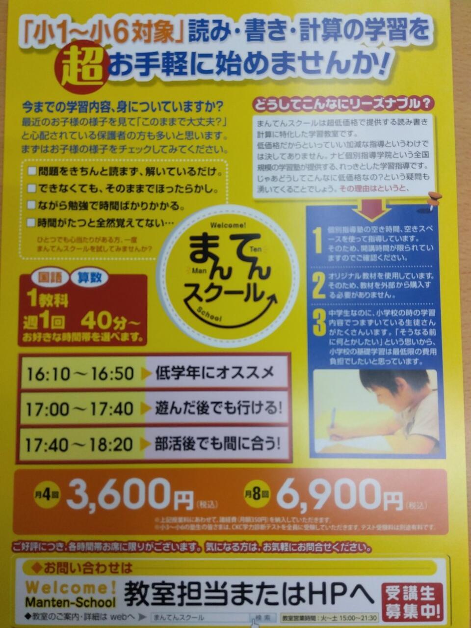 ナビ個別指導学院 取手校では、プリント学習の「まんてんスクール」の生徒さんを募集中です。