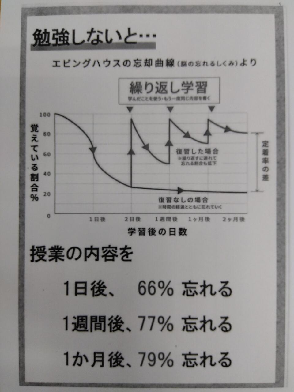 写真のように、時間が経つと記憶はどんどん低下していきます。