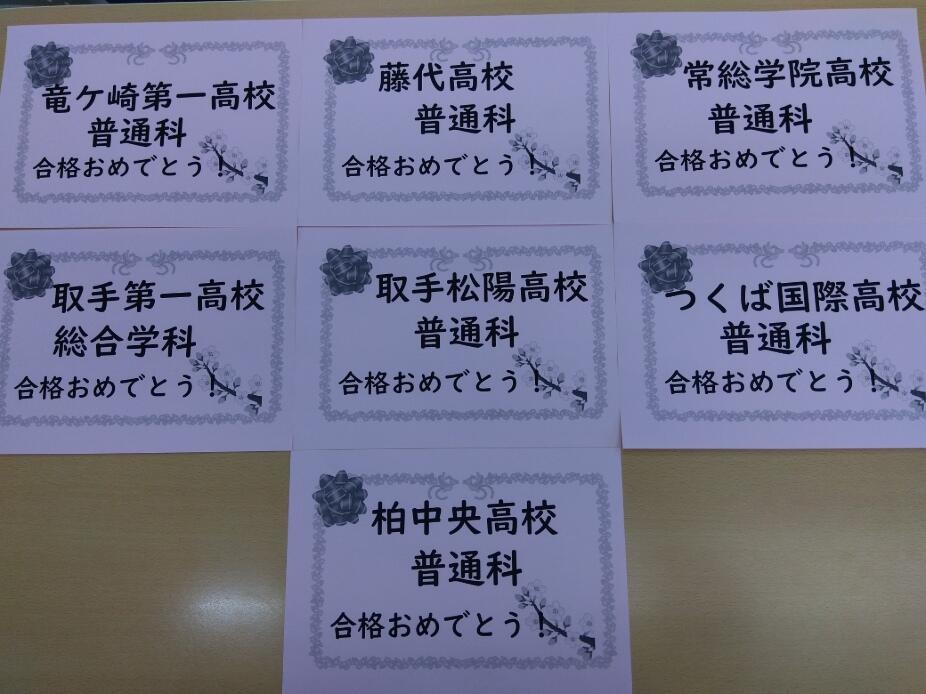 ナビ取手校の生徒が千葉県公立高校と茨城県立高校に全員合格しました!!