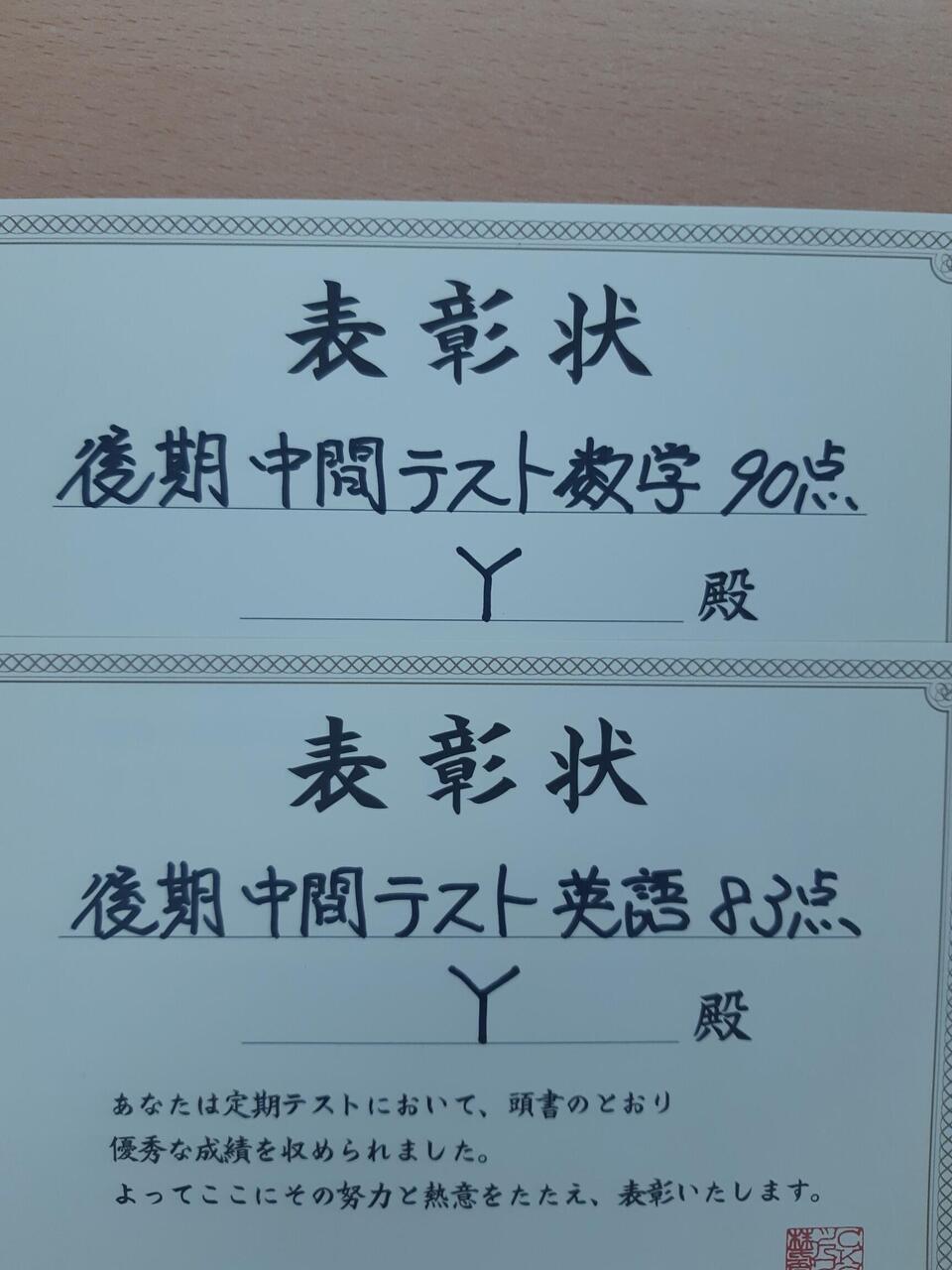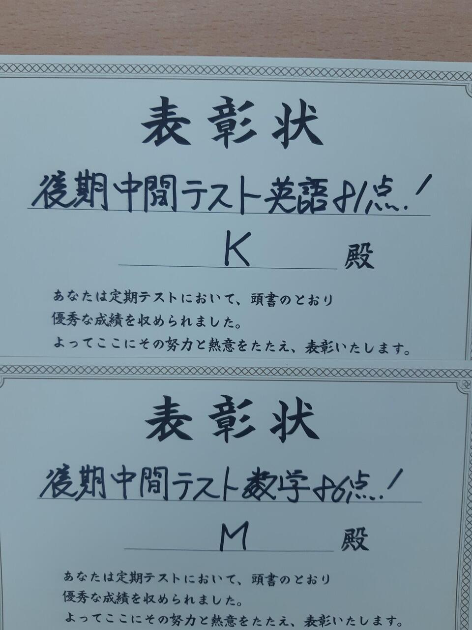 今回、後期中間テストの点数アップ者を紹介させていただきます。
