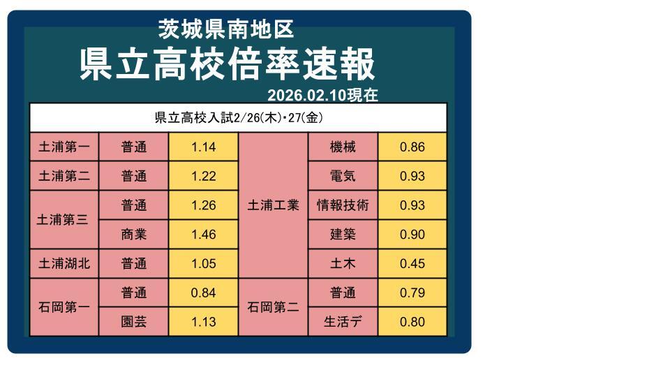 県南地域では、例年通り「土浦一高」「土浦二高」「土浦三高」の倍率が高いです。