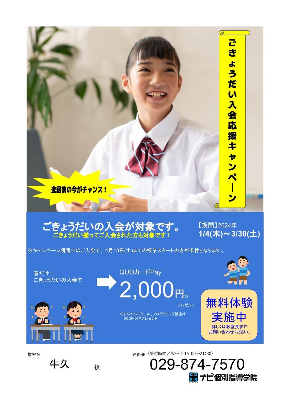 春だけ!ごきょうだいの入会でQUOカードpay2000円分プレゼント