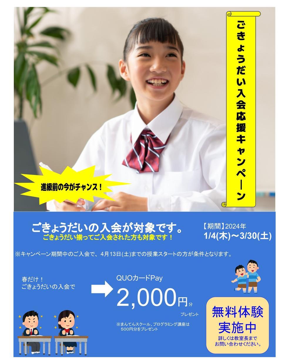 気になるキャンペーンの内容は、キャンペーン期間中のごきょうだいのご入塾で
